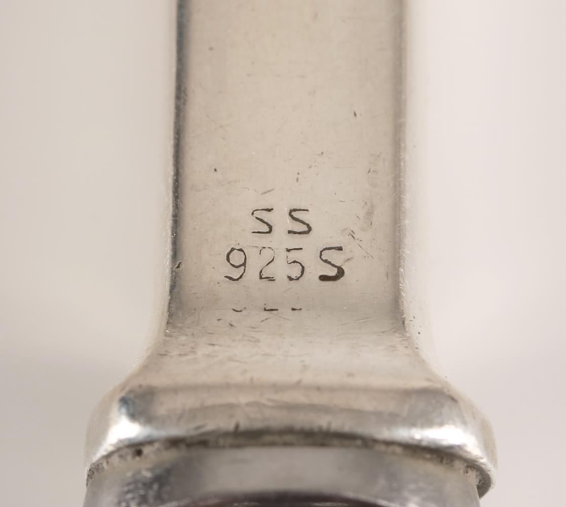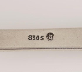 Smiðsstimpillinn "ss" stendur fyrir Silfursmiðjuna h.f. Verkstæðið stofnaði Guðjón Bernharðsson (f. 1901, d. 1978) gullsmiður. Um 1940 eignuðust Guðmundur Andrésson, Guðmundur Þorsteinsson og Óskar Gíslason gullsmiðir í Reykjavík fyrirtækið. Síðar keyptu Bjarni Óskarsson, Kornelíus Jónsson, Vilberg Helgason, Gunnar Fredriksen og Þórarinn Guðnason smiðjuna. Í Silfursmiðjunni voru framleiddir silfurgripir í pressu og í mótum og var þar stór pressa fyrir stansinn. Framleiðslan var aðallega borðbúnaður úr silfri, 830/1000 silfur, auk annars konar silfurgripa. Stimpill Silfursmiðjunnar var lengst af stórt S í hring, en þó kom fyrir að hann væri "ss". Í tíð Guðjóns var smiðsstimpillinn aftur á móti "GB". Hnífaparasettið er því ekki eldra en frá 1940, þegar Guðjón seldi fyrirtækið. Rekstri Silfursmiðjunnar var hætt 1970.