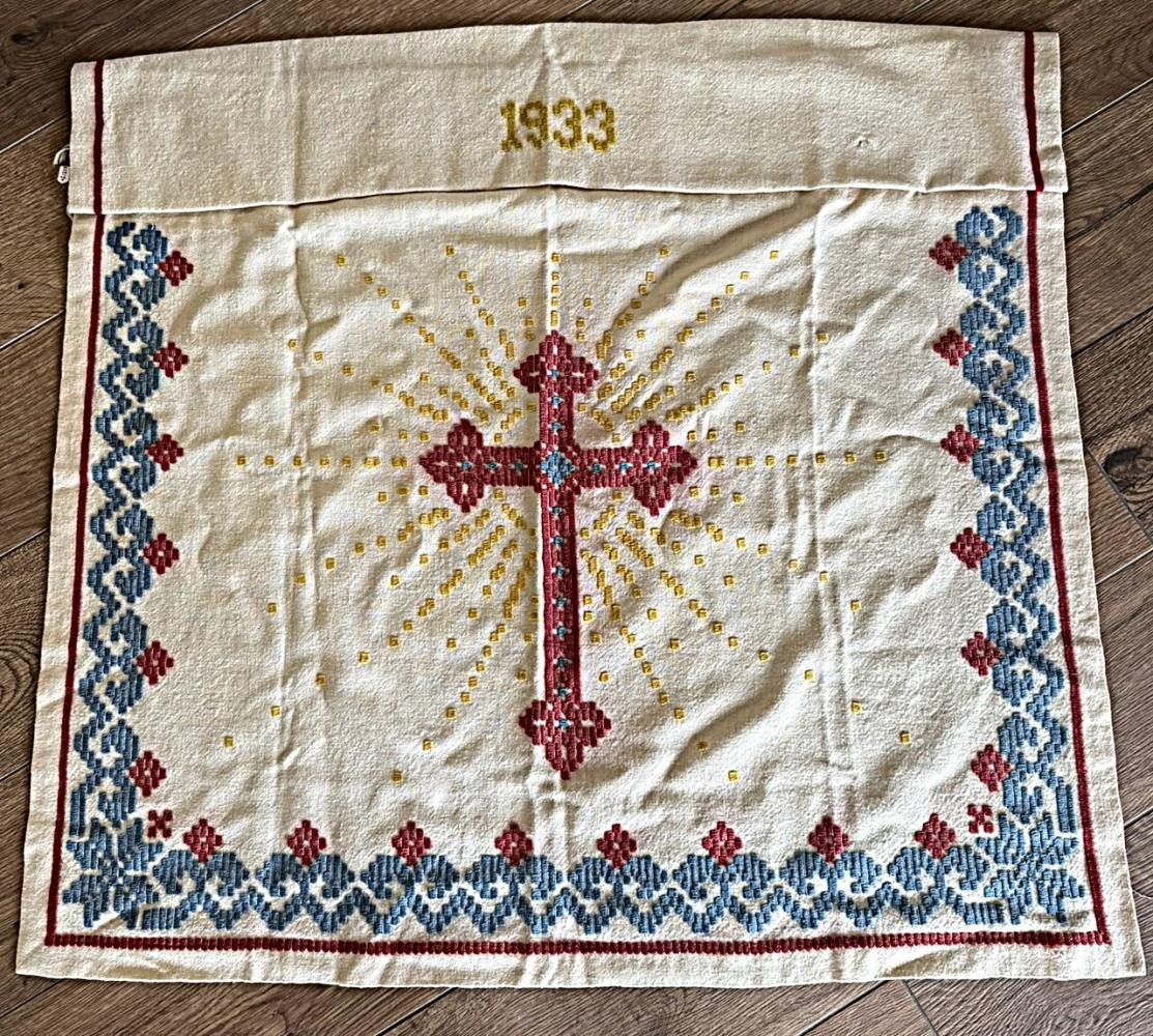 Altarisklæði úr Grafarkirkju, glitofið af Kristínu Sigurðardóttur á Búlandi. Í klæðið er ofið krossmark með geislakransi. Að ofan er ártal 1933. Skrautbekkur að neðan og til hliða. Afhent af Sigríði Guðjónsdóttur í Hlíð í Skaftártungu.
