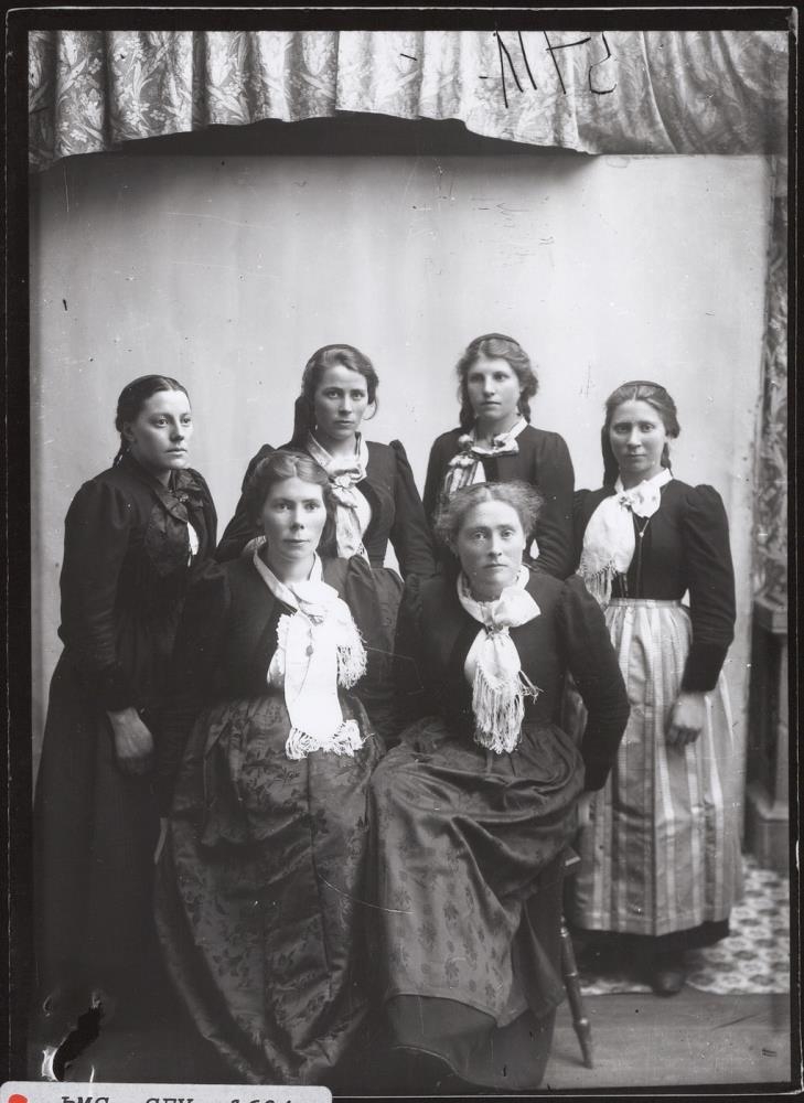 Efri röð f.v. Helga Sigurðardóttir á Refsstöðum, Vilborg Runólfsdóttir, Þórdís Sigurðardóttir frá Þorvaldsstöðum og óþekkt kona. Neðri röð f.v. Pálína Jóhannesdóttir g. Möller og óþekkt kona.
