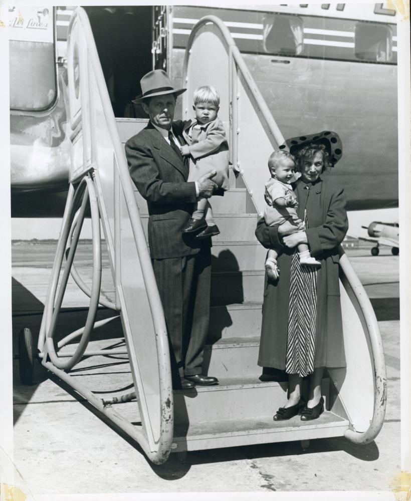 Hjónin Guðrún Guðmundsdóttir og Eiríkur Brynjólfsson prestur á Útskálum í Garði með tvö af börnum sínum. Myndin er líklega tekin í Kanada.