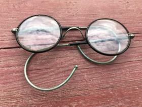 Gleraugu og gleraugnahús Guðmundar í Fíflholti. Virðast frá um 1940.