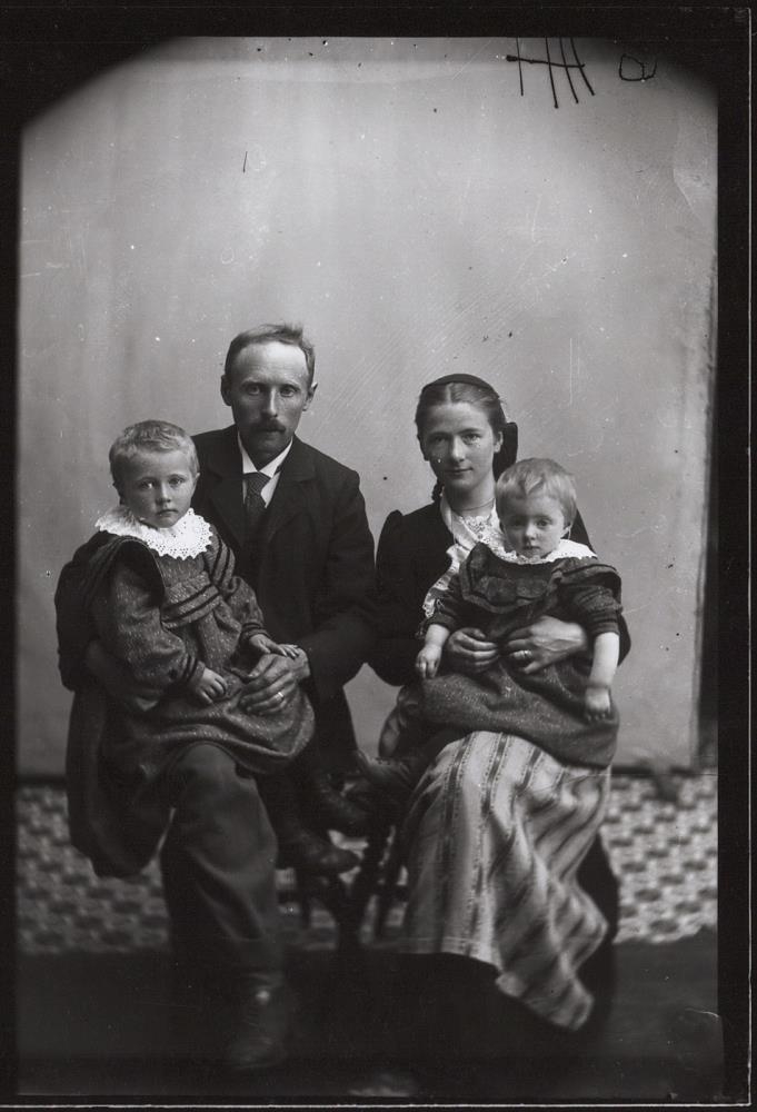 Hjónin Helga Ólafsdóttir og Sveinn Jón Einarsson í Bráðræði í Reykjavík með dætur sínar. Sveinn heldur á Guðrúnu og Helga heldur á Ólafíu.