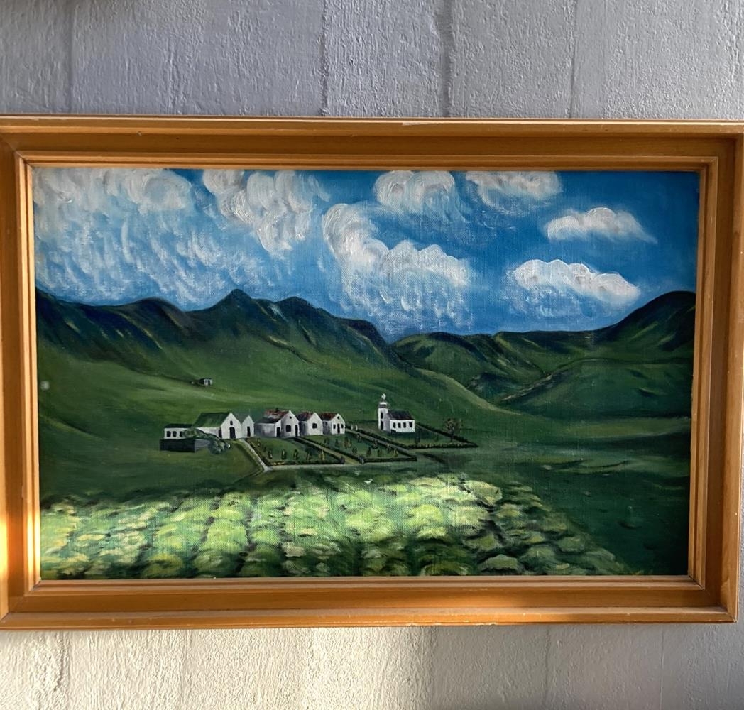 Olíumálverk af Stóra-Dal u. Eyjafjöllum eins og staðurinn leit út 1940. 78 x 51,5 cm. að stærð.