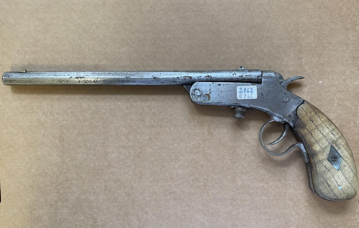 sagaði hann framan af riffli. Byssan er merkt H.P.