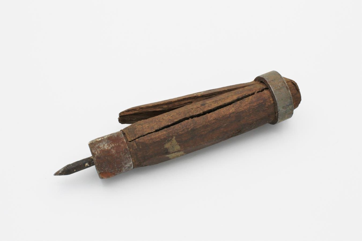 Skaftið er 11,0 sm langt, skrúfjárnið sem gengur upp í skaftið er 2,0 sm, þ.e. heildarlengd er 12,0 sm. Skaftið er mjög sprungið. Á skaftinu eru tvær járngjarðir, efst og neðst. Hefur sennilega verið notað sem skrúfjárn, heimasmíðað af Magnúsi eða Sigurði Hannessonum í Hólum á Stokkseyri að sögn Helga Ívarssonar.