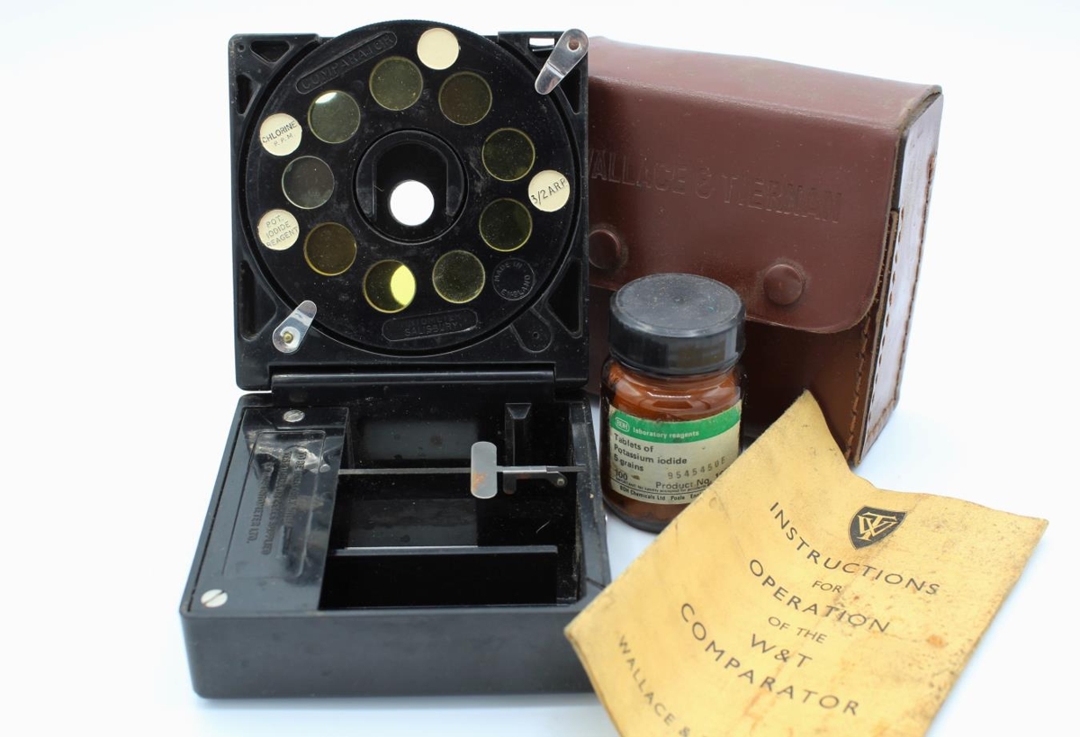 Mælitæki í pappakassa 16x12x7 sm að stærð og leðurhulstri rauðbrúnt 10,5x10x5 sm. Svart hylki úr plasti og gleri 9,2x9,1x4 sm og töfluglas auk leiðbeininga á ensku.