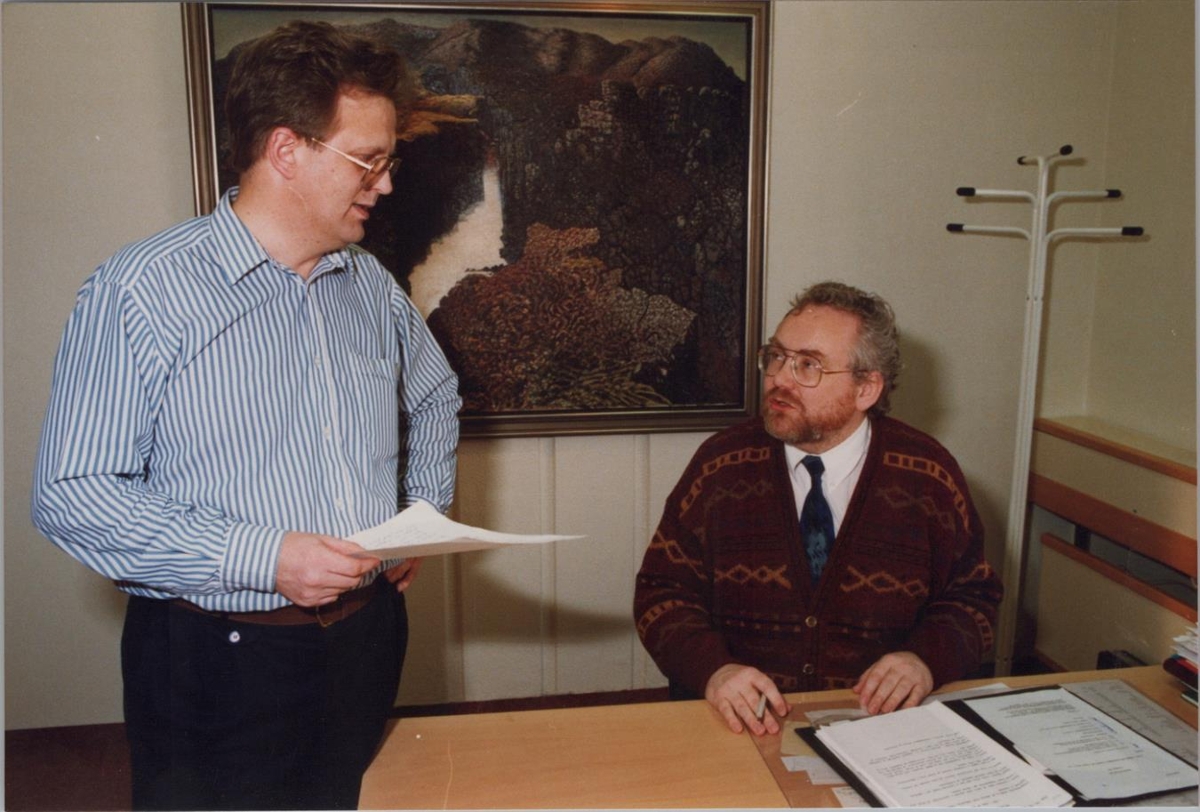 Ásmundur Stefánsson ásamt nokkrum af helstu starfsmönnum sínum 1991.