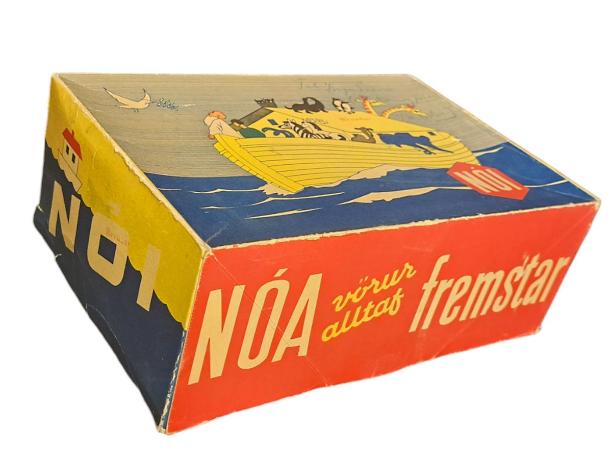 Pappakassi merktur "NÓA vörur alltaf fremstar". Stimplað hefur verið ofan á kassa "Brendur" sem er heiti á brjóstsykri sem Nói framleiddi.