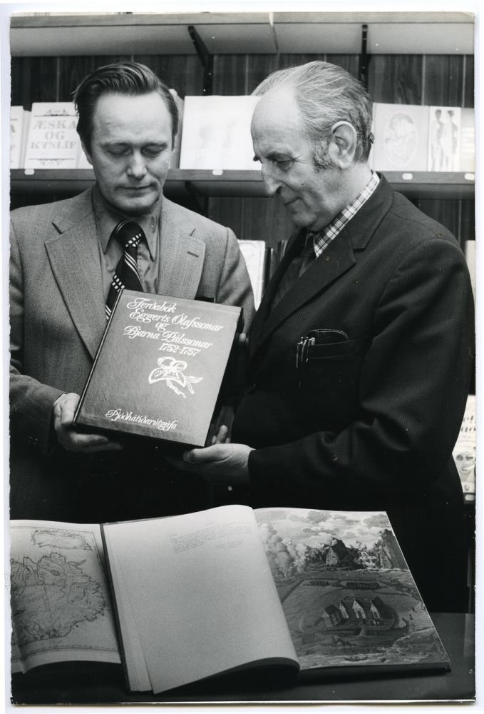 Hér halda þeir Örlygur og Steindór á Ferðabók Eggerts og Bjarna á milli sín.