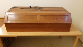 Þessi aðstaða var í skrifstofuherbergi stöðvastjórans við hlið stjórnborðs langbylgjusendisins. Þessi gripur kemur úr miklu safni útvarps- og sjónvarpstækja sem geymd voru í húsi Langbylgjustöðvarinnar á Vatnsenda sem rifið var í febrúar 2022. Til stóð að friða þetta hús og gera að safni, en fallið var frá því. Þangað hafði verið safnað í nokkra áratugi miklu magni tækja, allt frá árdögum útvarpssendinga í landinu.