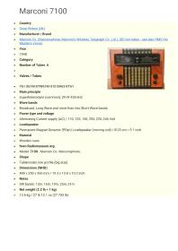 6 lampa útvarpstæki, Superheterodyne (common); ZF/IF 455 kHz Bylgjusvið Langbylgja. Stuttbylgju SW bands: 13m, 16m, 19m, 25m, 31m.