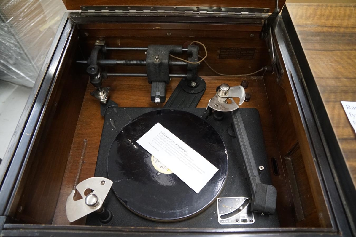 Tækið kom úr safni RÚV á Markúsartorgi. Upphaflega var það úr safni Karls Sigurðarsonar rennismiðs. Karl var mikill áhugamaður um gömul útvarpstæki og safnari. Hann var sjálfmenntaður í rafeindatækni og gerði upp flest öll tæki sem hann komst yfir. Karl gaf RÚV safn sitt til varðveislu þ.15. júlí 2002, samtals 146 tæki. Karl lést skömmu síðar. Karl fékk tækið hjá Þórarni Halldórssyni þ.19.september 1992. Í samstæðunni er útvarp, plötuspilari og upptökutæki, plötuskurðavél sem skar í þar til gerða lakkplötu sem var síðan hægt að spila aftur svipað og í segulböndum. Þetta var afar vandað tæki á sínum tíma. Með tækinu fylgja lýsingar á hvað Karl gerði við tækið. Skipti um lampa, renndi öxla í plötuspilarann, endurnýjaði skermaðar snúrur og setti nýtt Pickup í spilarann ásamt ýmsu fleiru. Verkinu lauk þ. 12. febrúar 1994. Í plötuskáp tækisins fylgdu ónotaðar lakkplötur fyrir upptökur ásamt 78 snúninga plötum. Ein er frá fyrirtækinu Telefunken með laginu „Santa Lucia, Tango, Pacifique Tango-Orkestret.