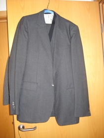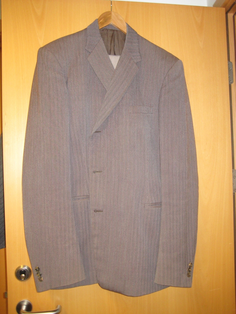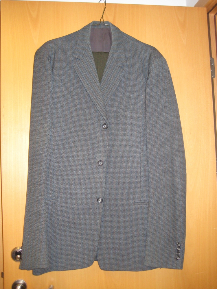 3486 G: Tvenn jakkaföt með tvídd áferð. Buxur ekki nákvæmlega samstæðar jökkunum.
