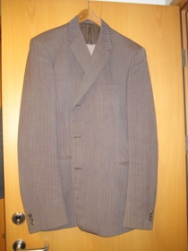 3486 F: Jakkaföt dökkbrún, ásamt aukavesti og aukabuxum ljósbrúnum, frá 1970 í notkun til 1980 þá orðið þröngt.
