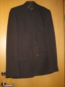 3486 D: Spariföt með vesti svört, brúnn jakki með tvennum buxum.