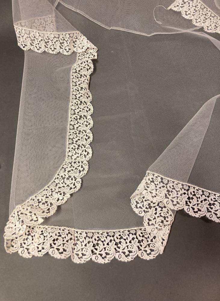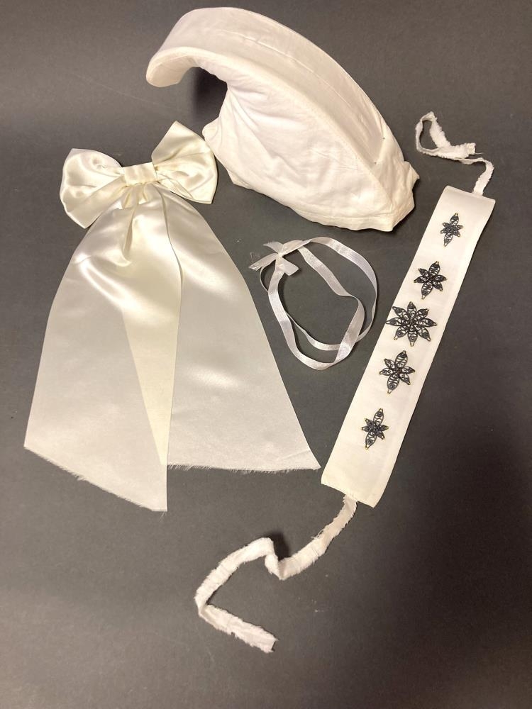 (Höfuðbúnaður). Þetta er faldur, saumaður af Höllu, blæjan, virðist vart hafa verið notuð, "silkislaufa" og stjörnukoffur. Koffrið er óvenjulegt í því að stjörnurnar (5) eru silfurvíravirki. Halla saumaði faldbúninginn 1956, þá 85 ára. Gjöf frá Elínu Frigg Helgadóttur, Bólstaðarhlíð 60, Reykjavík.