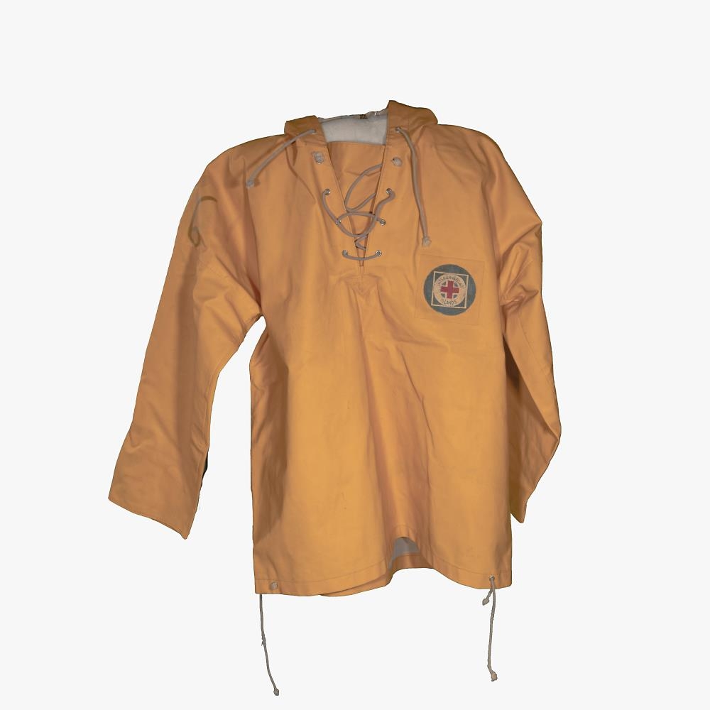 Appelsíugulur regnstakkur með merki Slysavarnarfélags Íslands