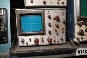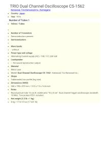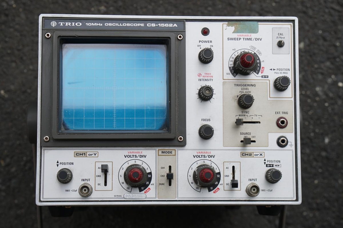 Sveiflusjá til mælinga á rafeindatækjum. Tegund: TRIO Dual Channel Oscilloscope CS-1562. Model: Dual Channel Oscilloscope CS-1562 - Kenwood, Trio-Kenwood Inc.; rafstyrkur og riðstraumur (AC) / 100; 117; 230 Volt.