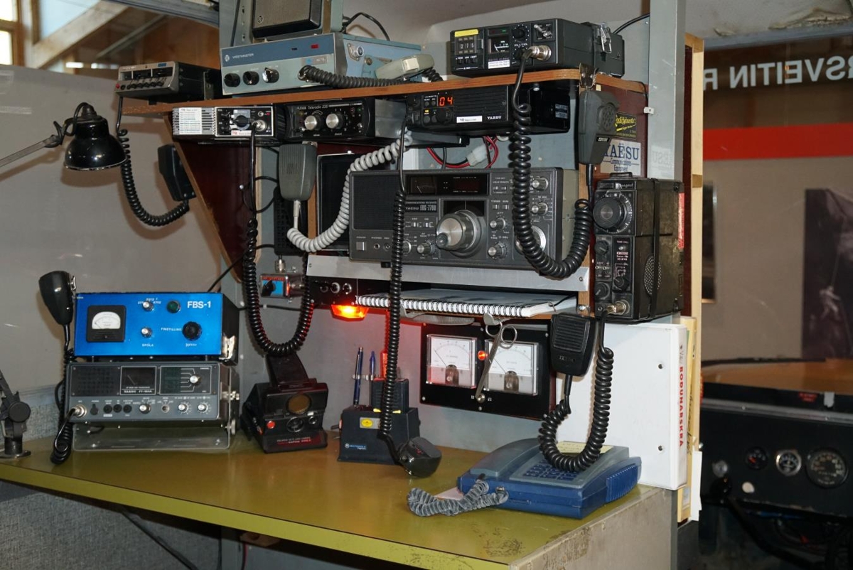 Talstöðvarnar eru: SSB 100W Yaesu FT-180 stöð ásamt loftnetstunner. 2 st VHF talstöðvar. 1 st.CB talstöð og stöð á flugbandinu. Almannavarnastöð og 100 rása VHF Scanner.