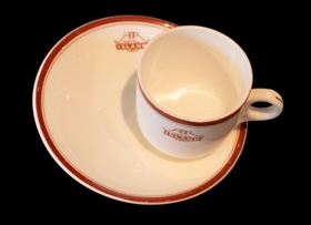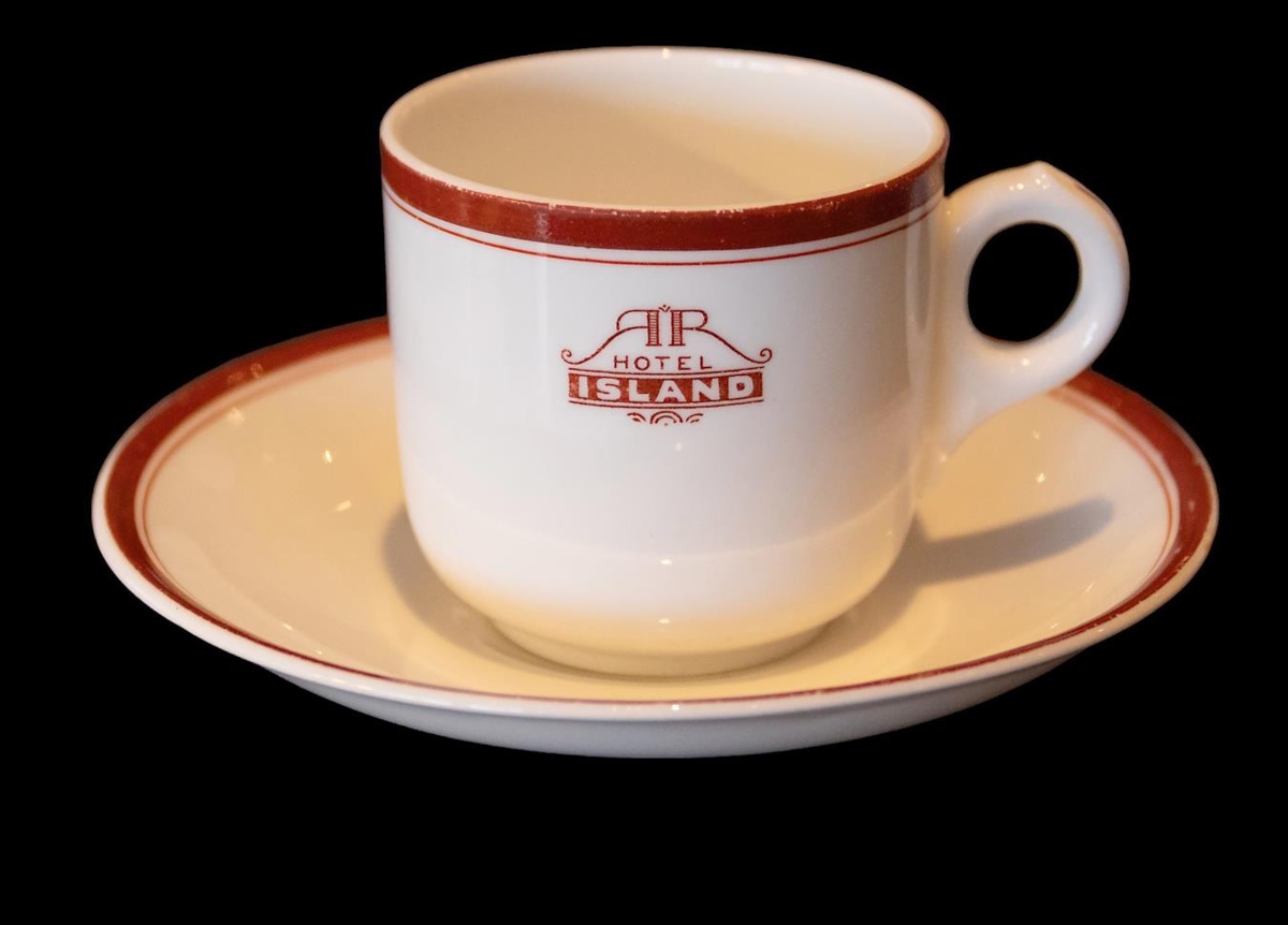 Kaffibolli og undirskál, hvort-tveggja merkt Hótel Ísland.