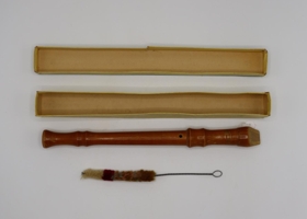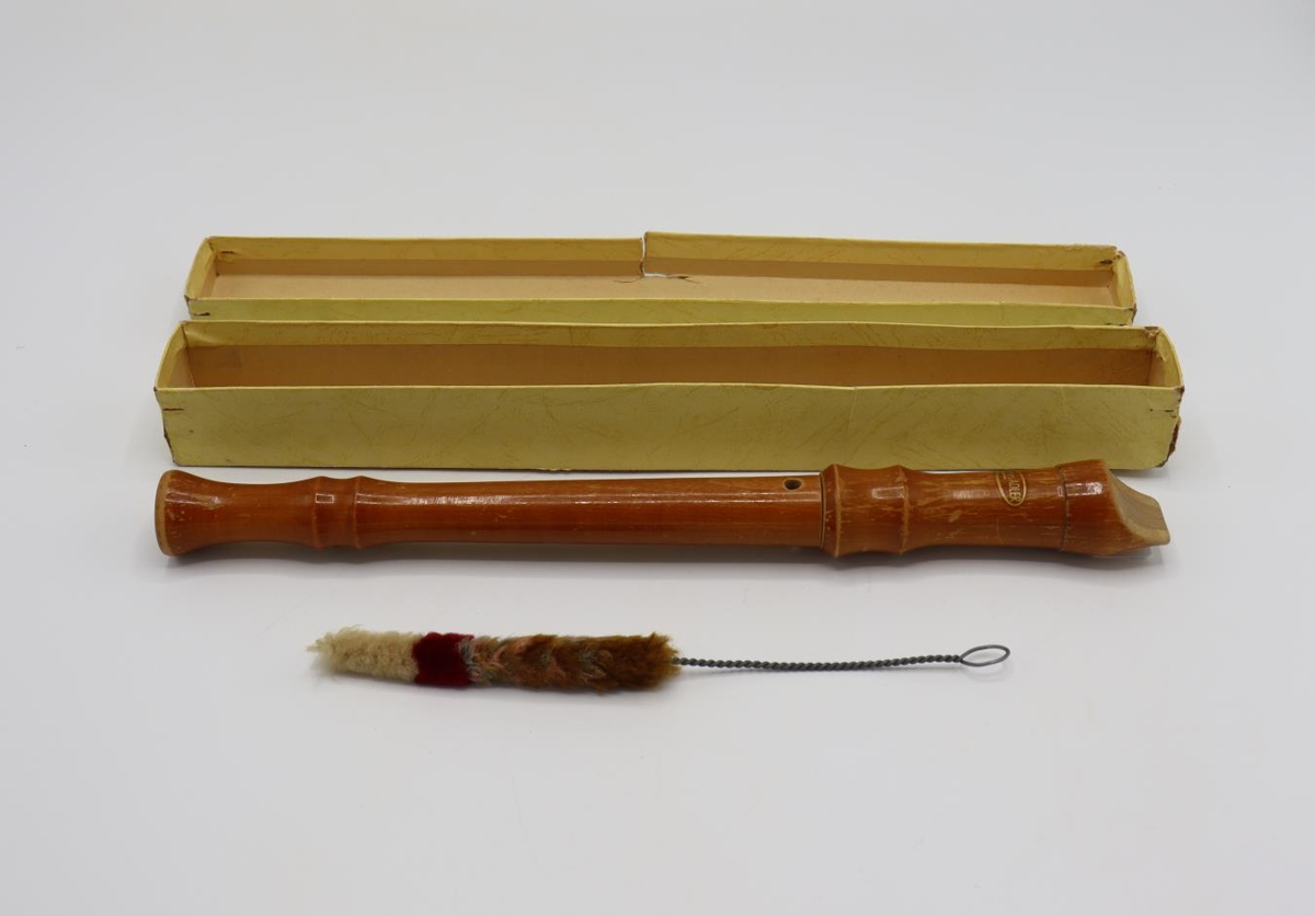 Altflautan er einnig í góðu ástandi, framleiðandi hennar var Mollenhauer, hún er einnig viðarlituð.