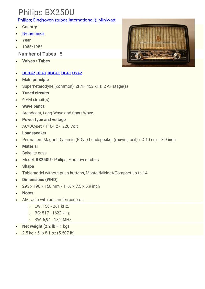 Tuned circuits 6 Wave bands Broadcast, Long Wave and Short Wave.