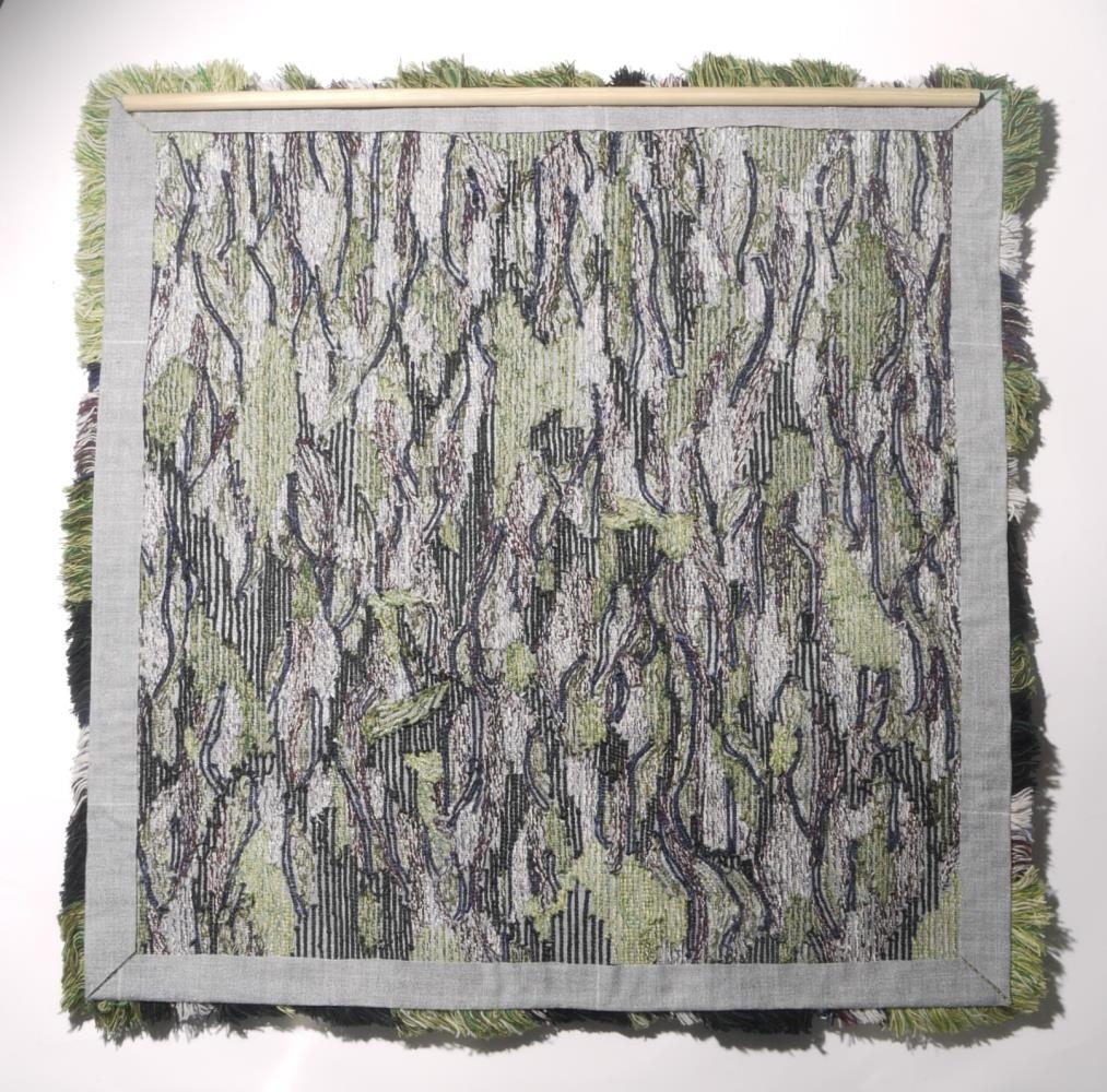 Textíllistaverkið "Dýjamosi dagrenningar" eftir textílhönnuðinn Lilý Erlu Adamsdóttur. Verkið er unnið úr ull, móhair, silki og hör. Verkið er unnið í striga með tuftbyssu.