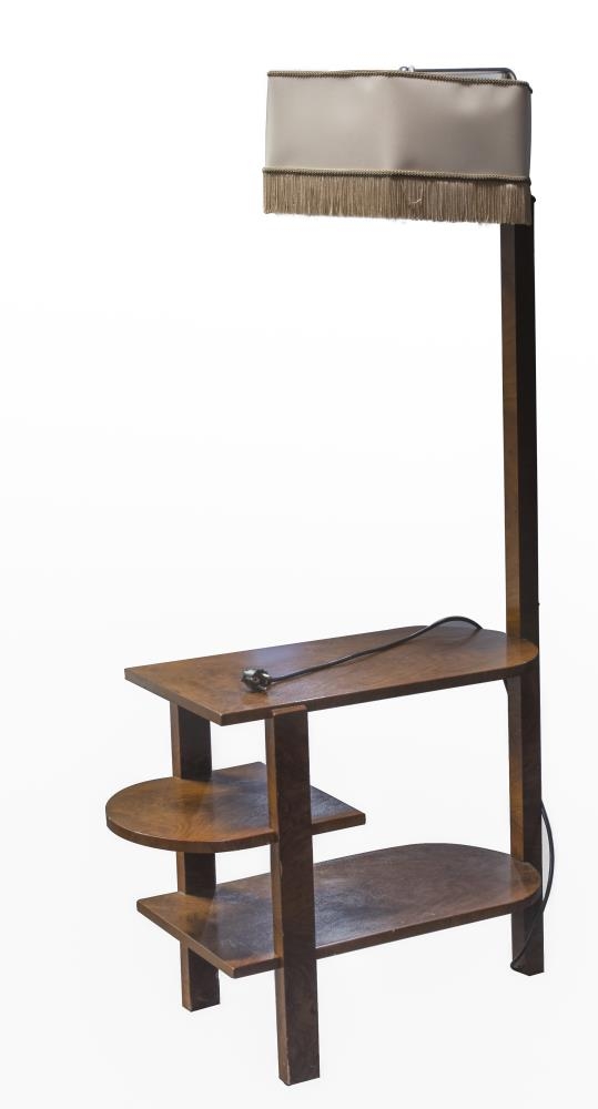 Art Deco gólflampi með áföstu borði og krem lituðum skermi og kögri.