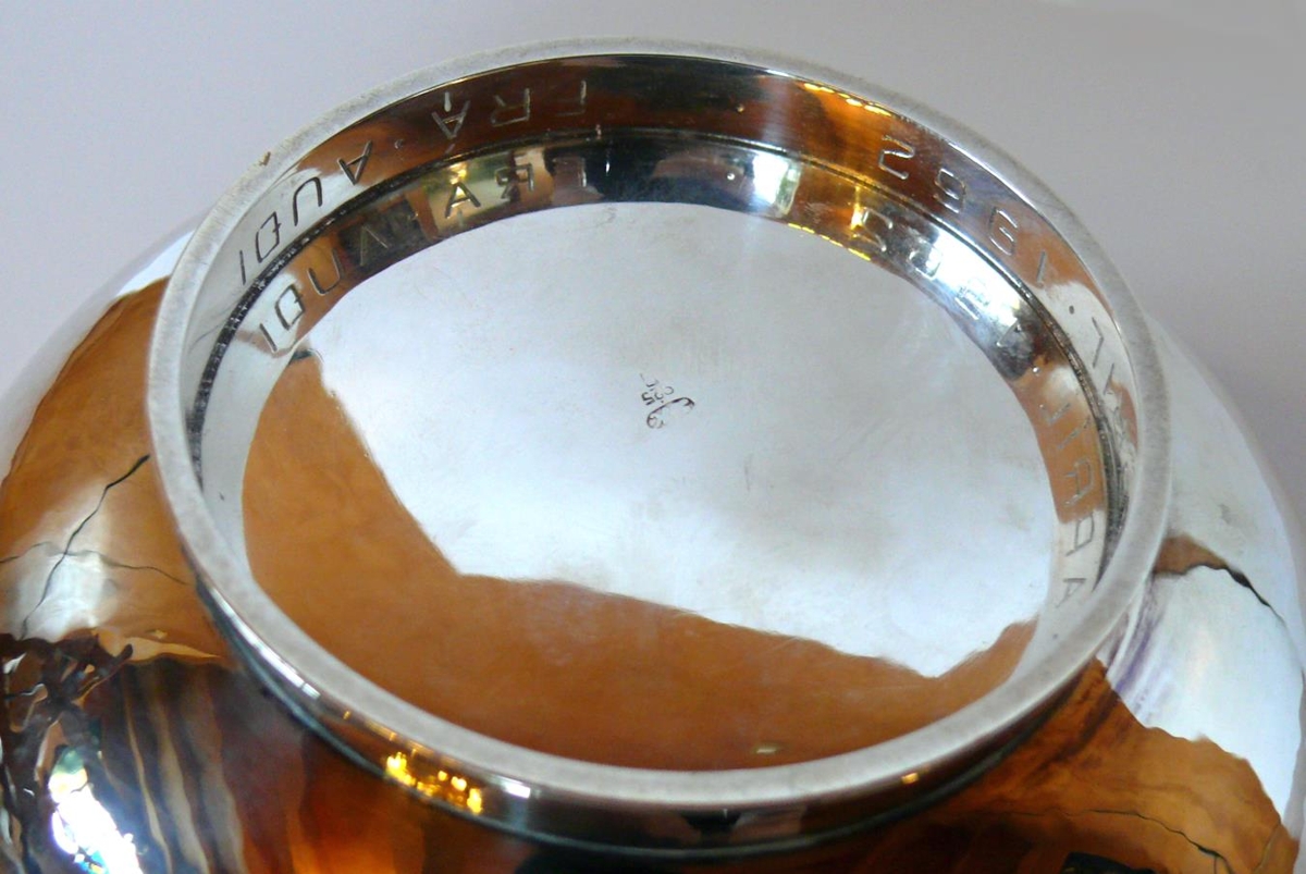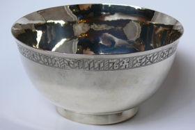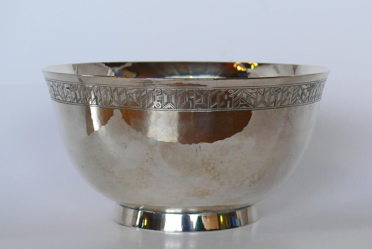 Gjöf frá Auði til Halldórs á sextugs afmæli hans. Skálin er með rúnaletri efst utan á, texta sem Auður fékk frá Jóni Helgasyni: "Ljúfan mann leit ég þar við borgir, hvar hann fer finnast engar sorgir."