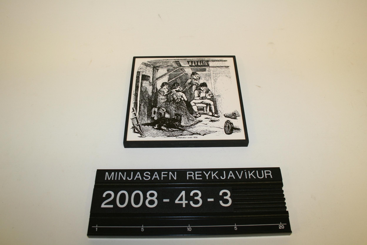 mynd frá 1836 sem sýnir kvöldvöku í sveit. Gert 1962