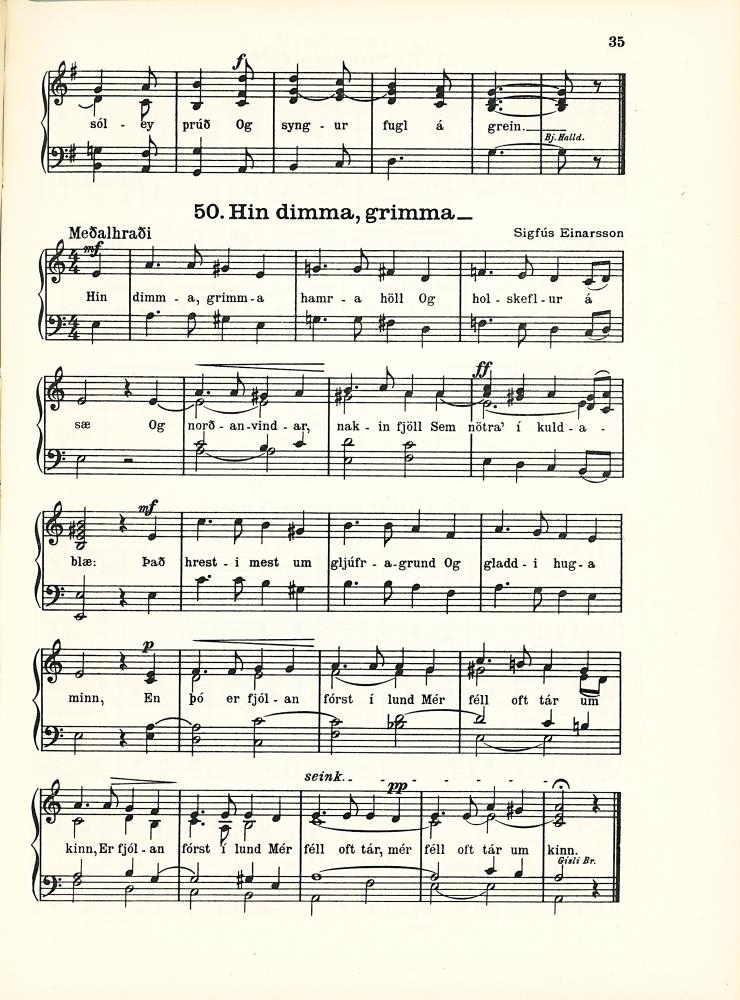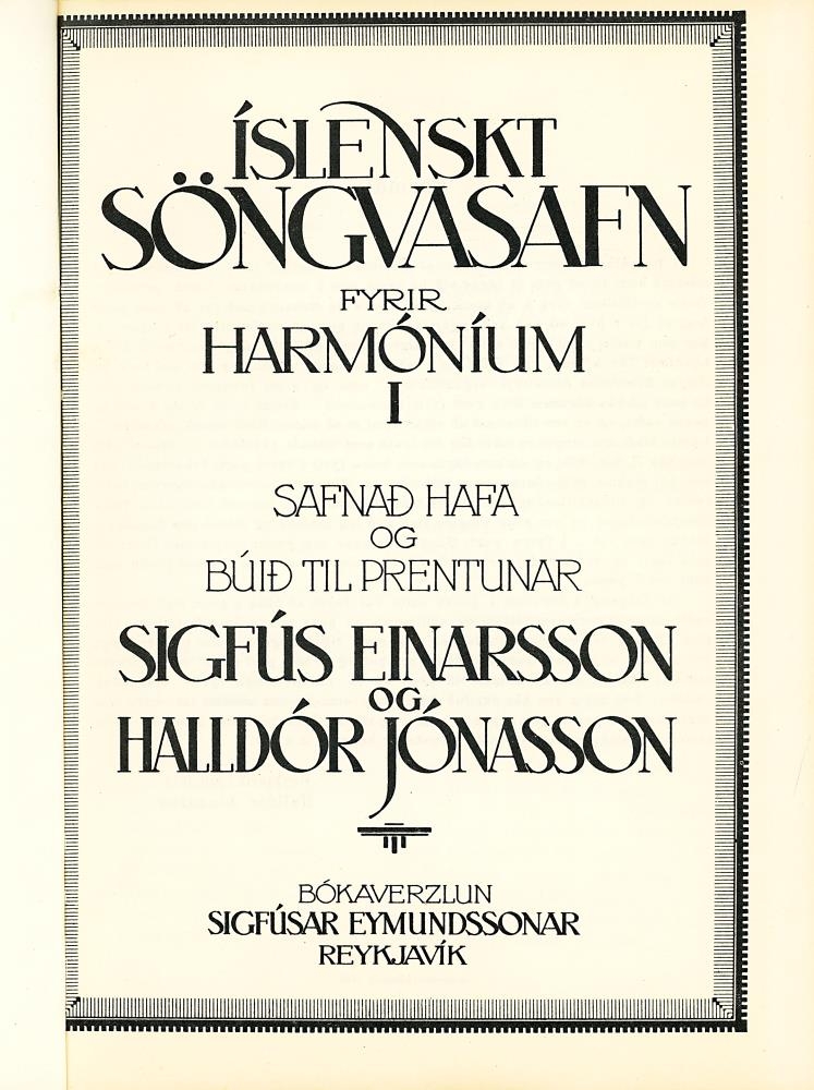 Íslenskt söngvasafn fyrir harmóníum : 1. hefti / safnað hafa og búið til prentunar Sigfús Einarsson og Halldór Jónasson. - [2. útgáfa]. - Reykjavík : Bókaverzlun Sigfúsar Eymundssonar, 1915. - iv, 111 bls. : nótur.