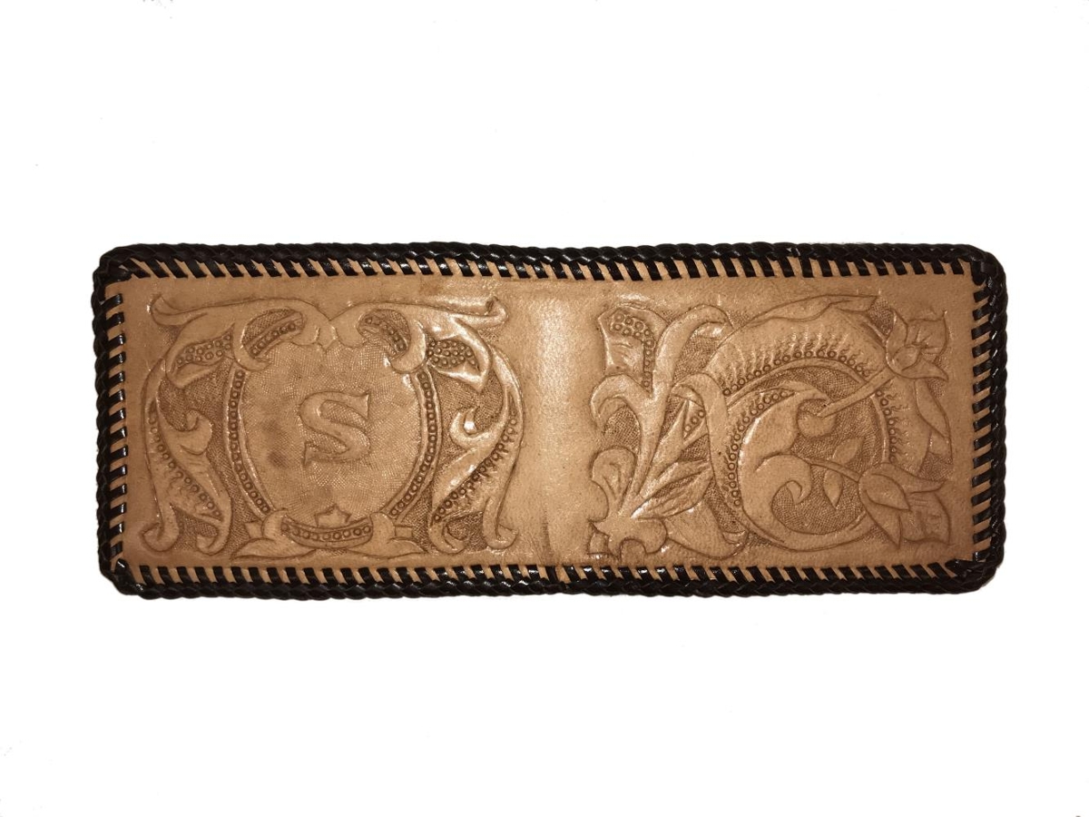 Seðlaveski úr leðri unnið í handavinnu