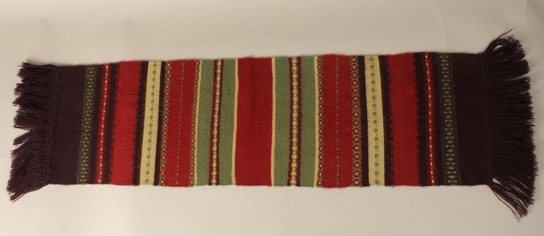 Borðdúkur, renningur, löber, handofinn um 1970 úr kambgarni frá Gefjun.