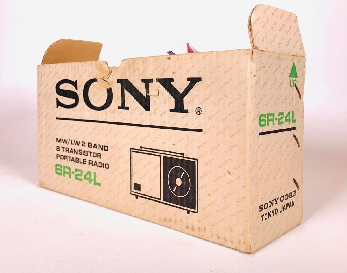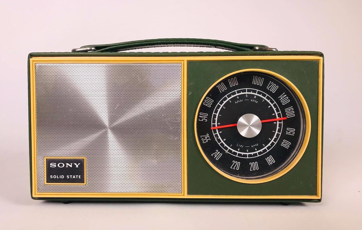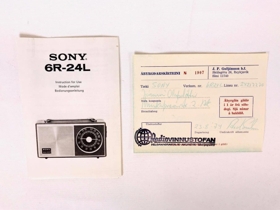 Sony ferðaútvarp í upprunalegum umbúðum ásamt ábyrgðarskírteini (1974). Keypt í versluninni Radiovinnustofan, Helgamagrastræti 10, Akureyri.