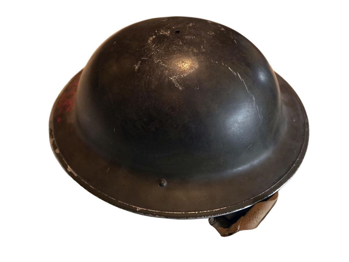 Breskur herhjálmur og hermenn báru þannig hjálma við komuna til Íslands.