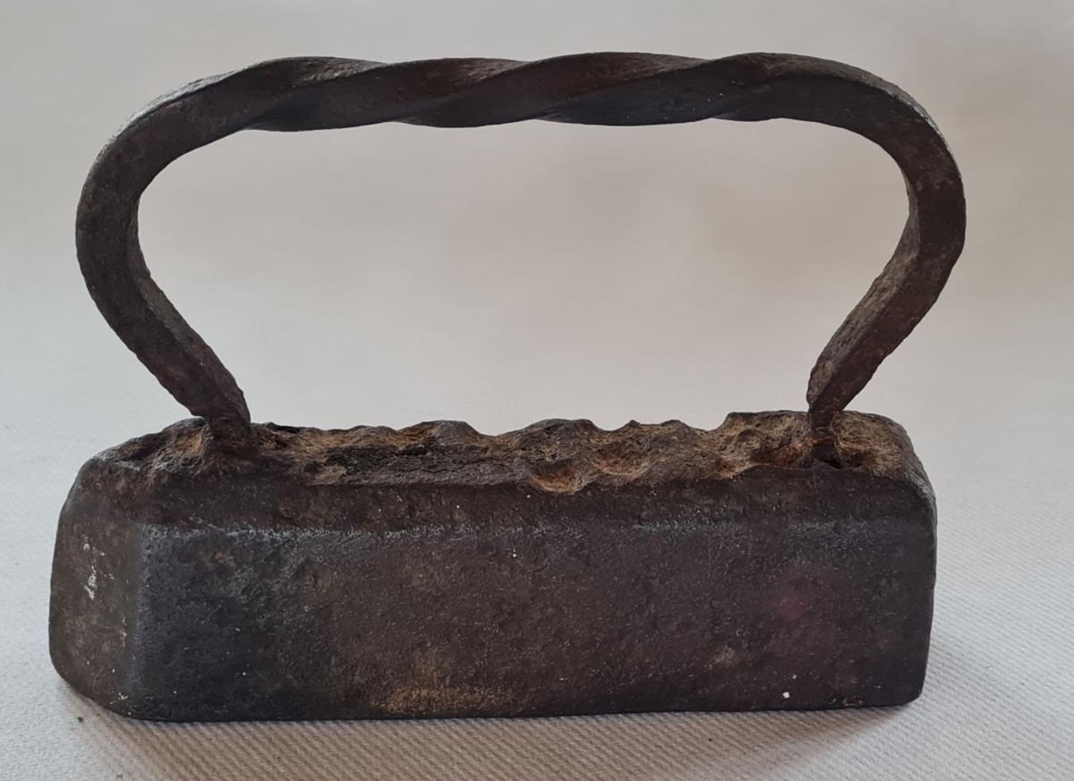 Straubolti. Lítið aflangt járnstykki með haldi og slétt að neðan. Hitað á eldavélarhellu eða á hlóðum. Úr búi Jóhönnu Sigurjónsdóttur (1900-1992) og Sigurðar Gunnarssonar (1895-1974) Kolbeinsgötu 2 (Baldursheimur) Vopnafirði. Áður bændur á Ljótsstöðum Vopnafirði frá 1923-1966. Gefandi er dóttir þeirra.