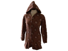 Samfestingur með hettu og eru stuttbuxur, fylgir með pils sem er opið á framan. Á hvorri ermi eru sex hnappar með opi á milli.