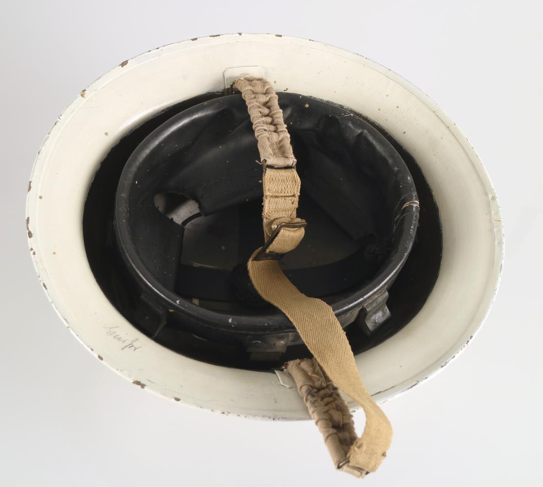 Sjúkrahjálmur, hjálmur hjúkrunarkonu úr síðari heimsstyrjöldinni. Hjálmurinn er 30,5 x 28,5 cm að stærð og um 13 cm á hæð. Hjálmurinn hefur verið málaður hvítur að utanverðu og á innanverðu barðinu. Fyrir miðju á hjálminum framanverðum er rauður kross málaður, um 4,5 x 4,5 cm að stærð. Hlíf er í hjálminum innanverðum og ól sem strengd er undir höku. Hægt er að strekkja á bæði hlíf og ól. Hlífin er merkt stærðinni 6 og 3/4. Framleiðslustimpillinn TTC I og framleiðsluárið 1939 er á henni, hún hefur því verið framleidd af Teddy Toy Company Ltd. í Dagenham. Á barðinu á hjálminum innanverðum má greina framleiðslustimpilinn RO & CO, við hliðina á er stimplað KY og framleiðsluárið 1939. Hjálmurinn er því bresk smíði, framleiddur af Rubery Owen & Co. Ltd. í Leeds. Hér er líklega um MkII (Mark II) hjálm að ræða. Á barðinu innanverðu hefur verið skrifað með blýanti Geirþr.