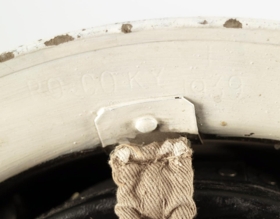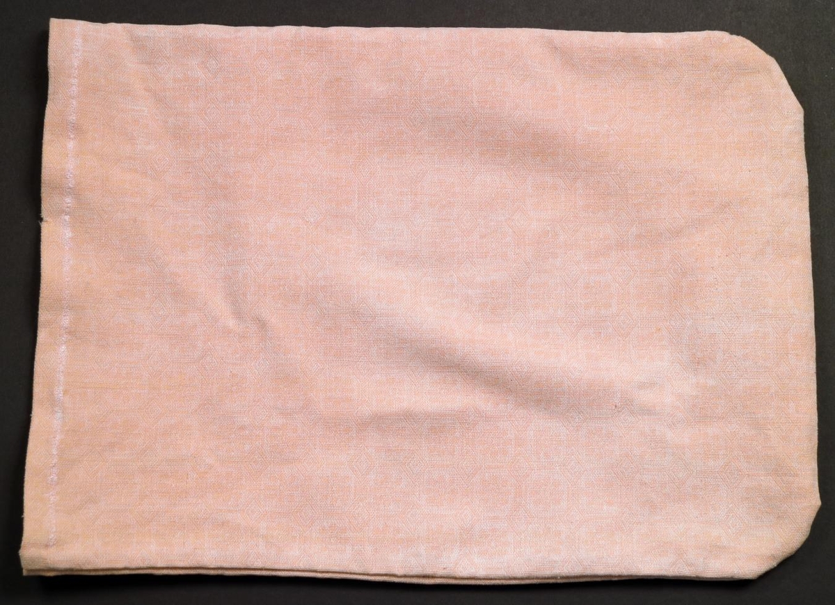 Hjálminum fylgir fölbleikur taupoki, opinn í annan endann. Pokinn er 43 x 32 cm að stærð. Hjálmurinn hefur að öllum líkindum verið geymdur í pokanum síðari ár.