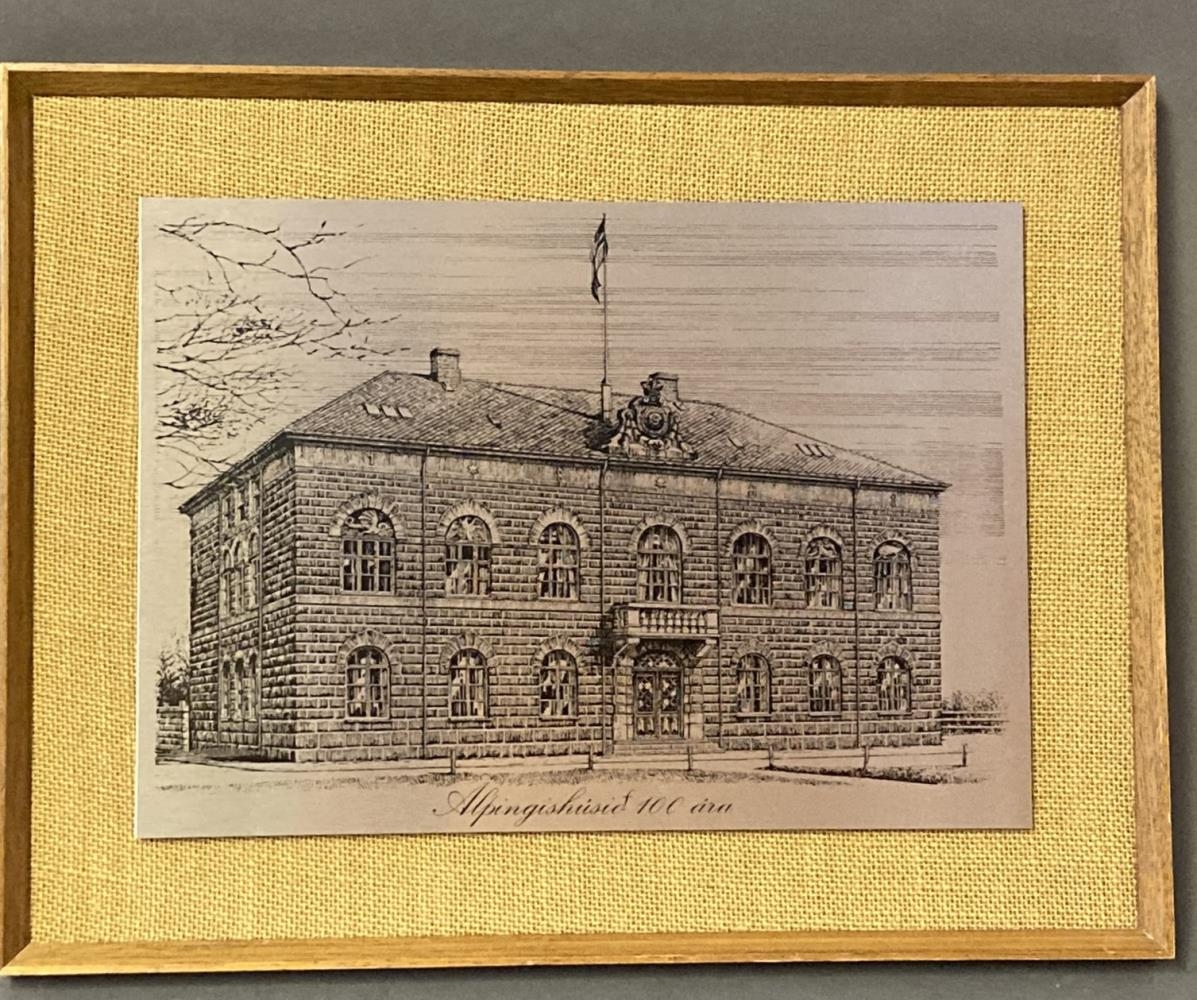 Málmmynd af Alþingishúsinu í Reykjavík, nr. 41 af 300 tölusettum eintökum, frá 100 ára afmæli þess 1981. Gefin Birni Fr. Björnssyni f.v. alþingismanni. Gefendur: Ragnheiður Jónsdóttir og fjölskylda Björns Fr. Björnssonar sýslumanns Rangárvallasýslu.
