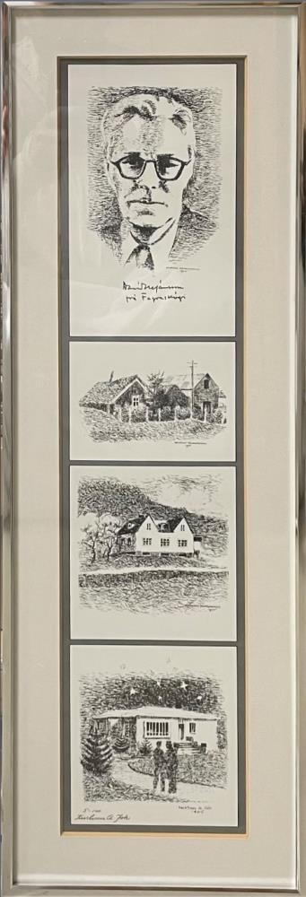 Davíð Stefánsson, skáld frá Fagraskógi og 3 myndir af gömæum húsum