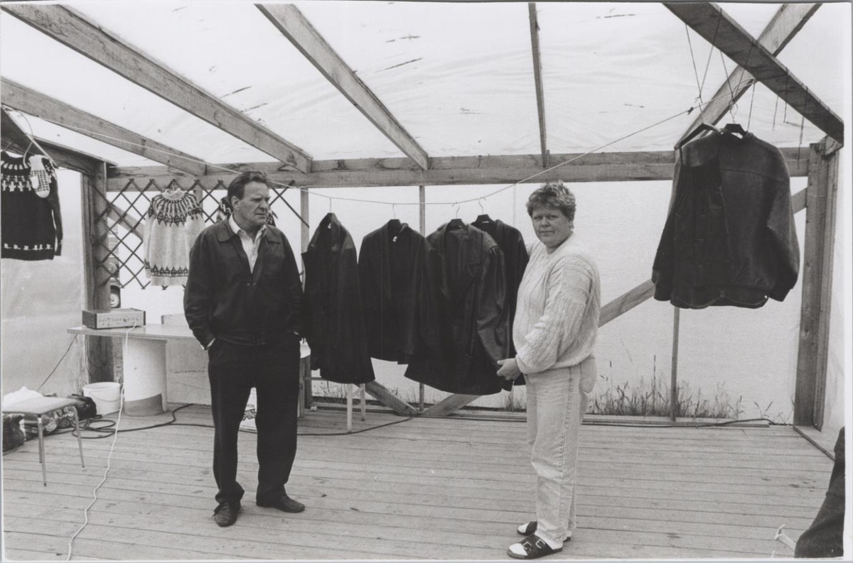 Útimarkaður á Egilsstöðum. Aðalsteinn Aðalsteinsson á Vaðbrekku í Jökuldal og Guðrún Sigurðardóttir umsjónarmaður útimarkaðar á Egilsstöðum.