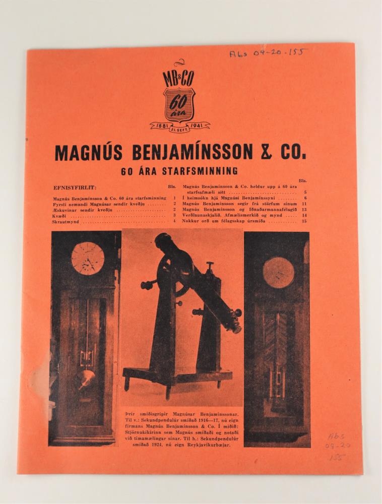 Afmælisrit. 60 ára starfsminning MB og Co útgefið 1941. Mjög merkilegt blað. Sérprentun úr 4 hefti tímarits iðnaðarmanna 1941. Prentað í Herbertsprent.