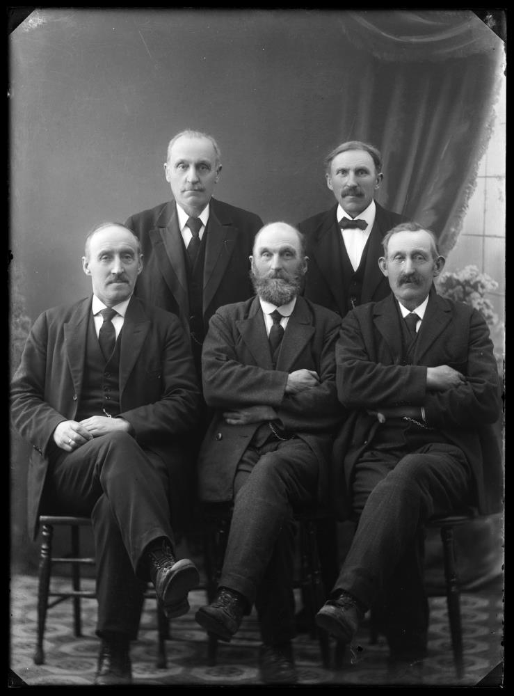 „Selsbræður samanber Slys-6676.“ „Svonefndir Selsbræður frá Stokkseyri, frá Syðra-Seli. Jón Pálsson bankagjaldkeri tv. í efri röð. Ísólfur hljóðfærasmiður lengst tv í neðri. Hinir eru Pálmar bóndi á Stokkseyri, Júníus bóndi í Syðra-Seli og Gísli bóndi í Kakkarhjáleigu en ég þekki þá ekki í sjón. Það eru þrjár myndir af þeim með mismunandi uppstillingu.“ (ILB 2025)