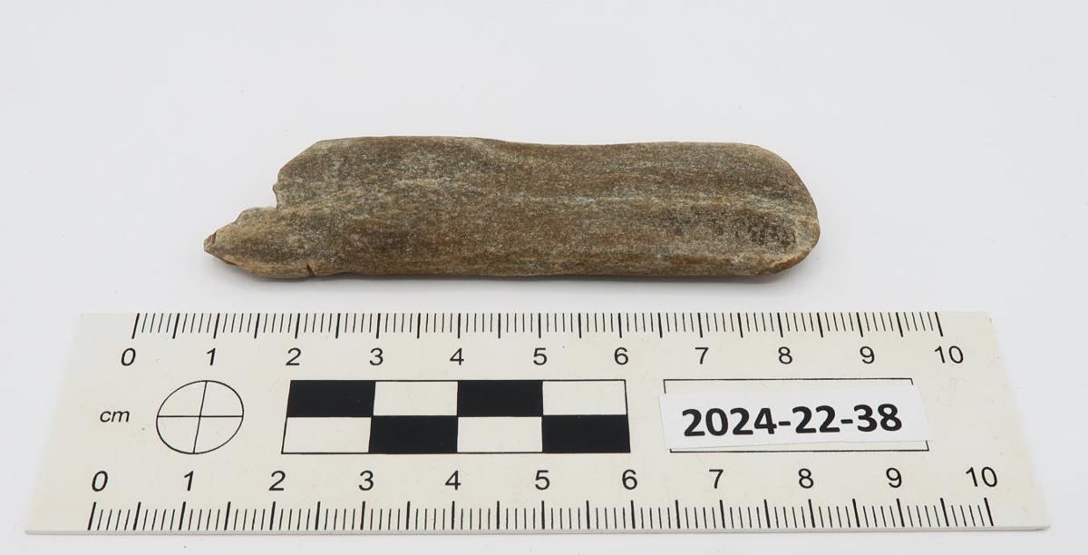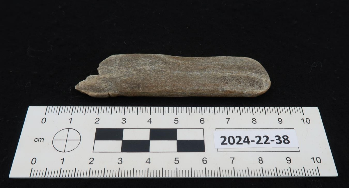 Brýnisbrot sem fannst í torfvegg í vestur sniði við hreinsun á mannvirki [22].
