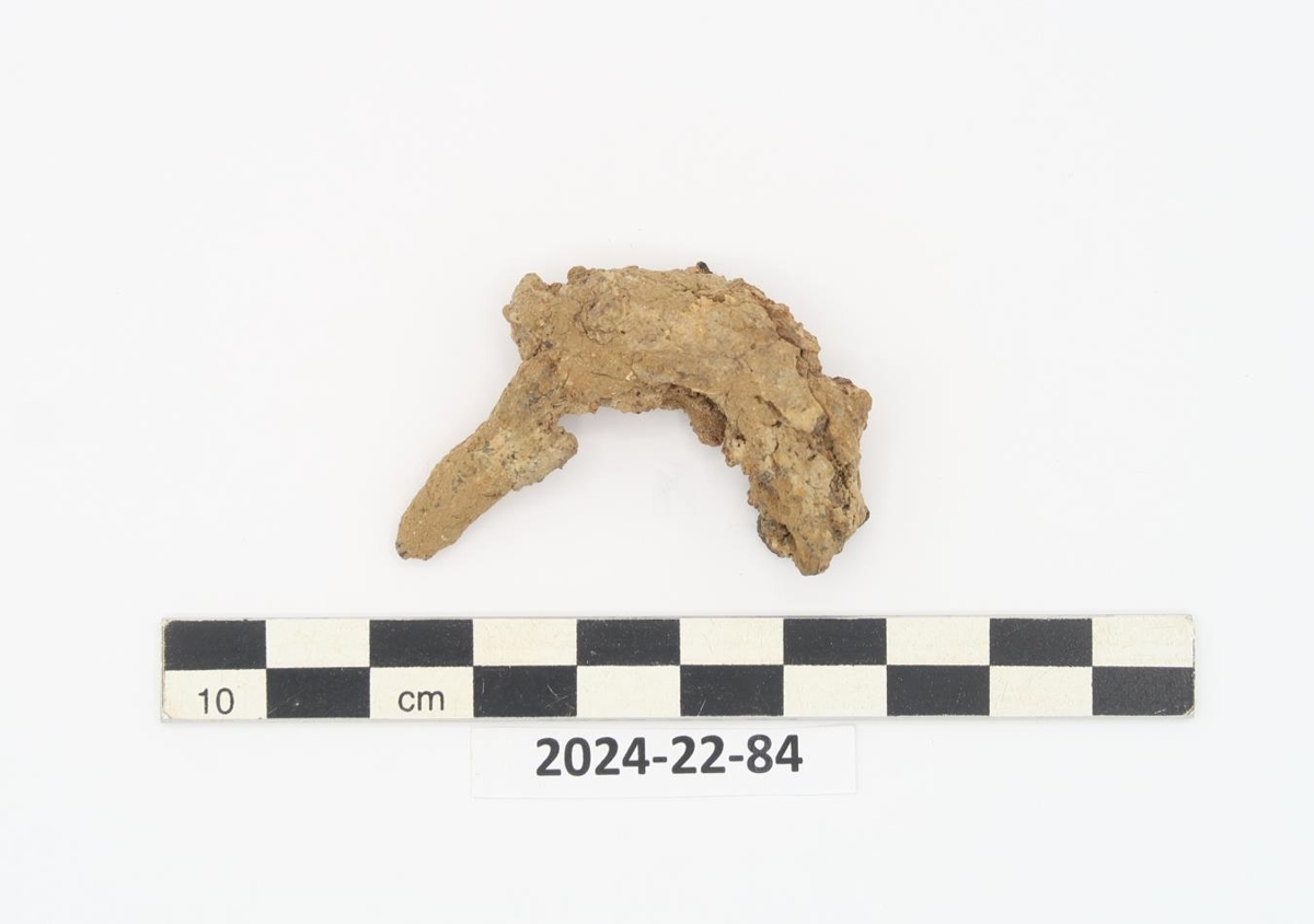 Járnbútur, bogadreginn, mögulega nagli eða öngull.