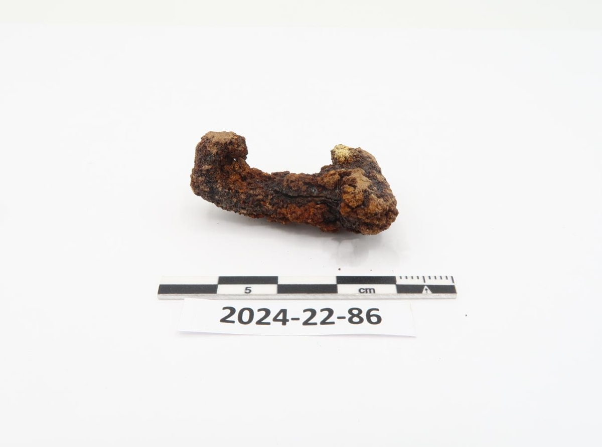 Járnstykki, kúpt í annan endann. Mögulega krókur.