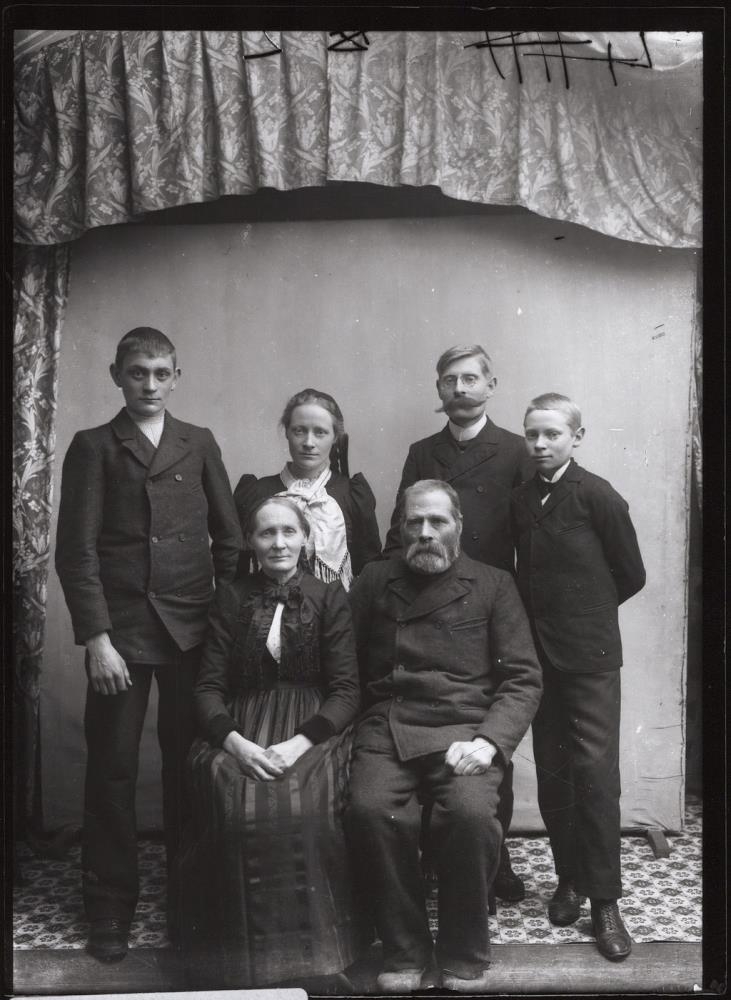 Hjónin Þorbjörg Filippusdóttir og Árni Jónsson tómthúsmaður á Lindargötu 3 (Tóftum). Ásamt börnum sínum. Standandi f.v. Vigfús Árnason húsasmiður í Noregi, Kristín Árnadóttir húsfreyja í Reykjavík, Jón Árnason prentari og Sigurður Árnason kaupmaður.