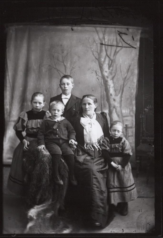 Rannveig Torfadóttir húsfreyja á Bakka í Reykjavík ásamt börnum sínum. Fyrir aftan eru Guðrún Árnadóttir og Grímur Kristinn Árnason. Fyrir framan eru Árni Jóhann Ingimundur Árnason og Guðrún Salgerður Árnadóttir. Maður Rannveigar og faðir barnanna var Árni Jóhann Grímsson, tómthús- og sjómaður. Hann lést tveimur mánuðum áður en yngsta barn þeirra fæddist.