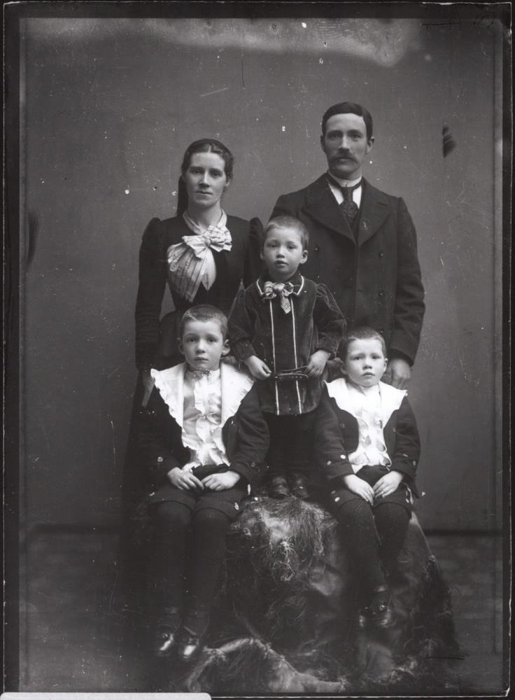 Hjónin Magdalena Sigríður Árnadóttir og Ellert Kristófer Schram seglasaumari og synir þeirra f.v. Kristján, Karl Jóhann og Gunnar.